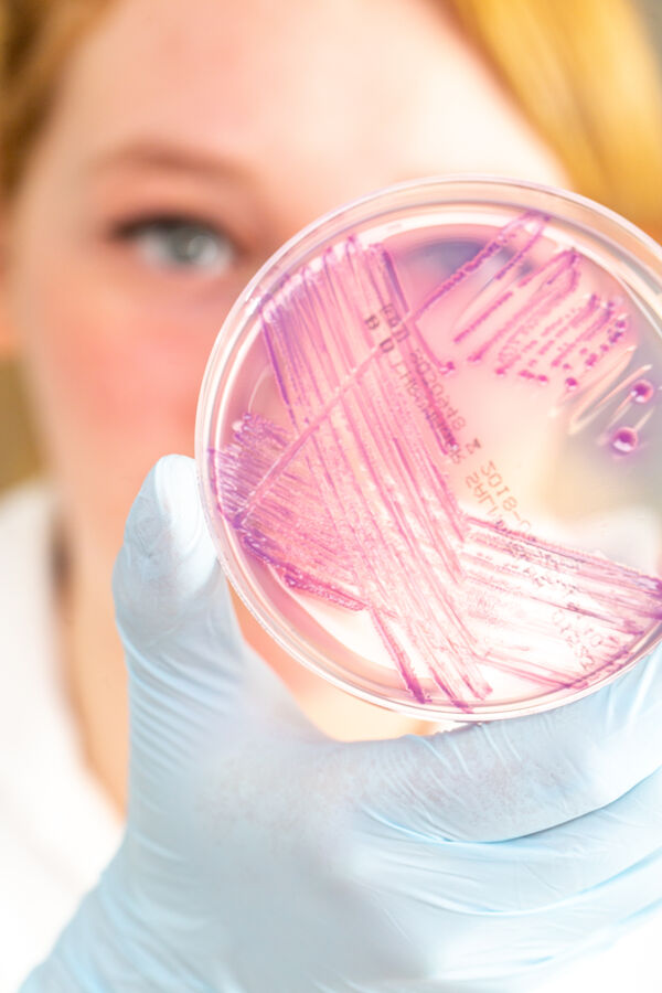 In unserem Labor erfolgt der Nachweis von EHEC im Stuhl mittels Multiplex-PCR. Bei positiven Befunden wird zusätzlich eine Kultur angelegt, um den Serovar zu bestimmen. Das RKI hat den Ausbruchsstamm als seltenen Serovar O45:H2 identifiziert. Da hierfür keine kommerziellen Seren verfügbar sind, übernehmen wir die Subtypisierung nicht selbst, sondern leiten die Proben zur weiteren Diagnostik an das Landesamt für Gesundheit (LAGUS) weiter.